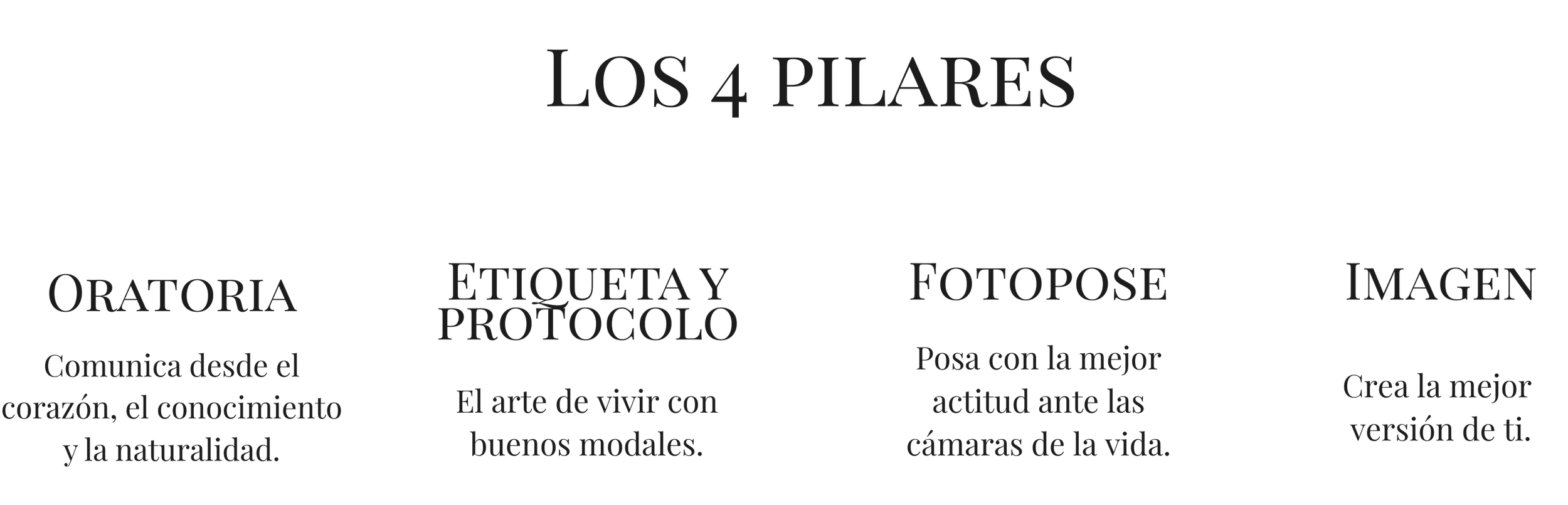 Máster classes individuales y grupales, asesorías personalizadas, formación en oratoria, imagen social y empresarial, etiqueta y protocolo, fotopose, modelaje, así como servicios audiovisuales y sesiones fotográficas profesionales.